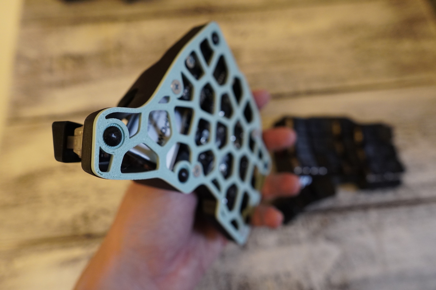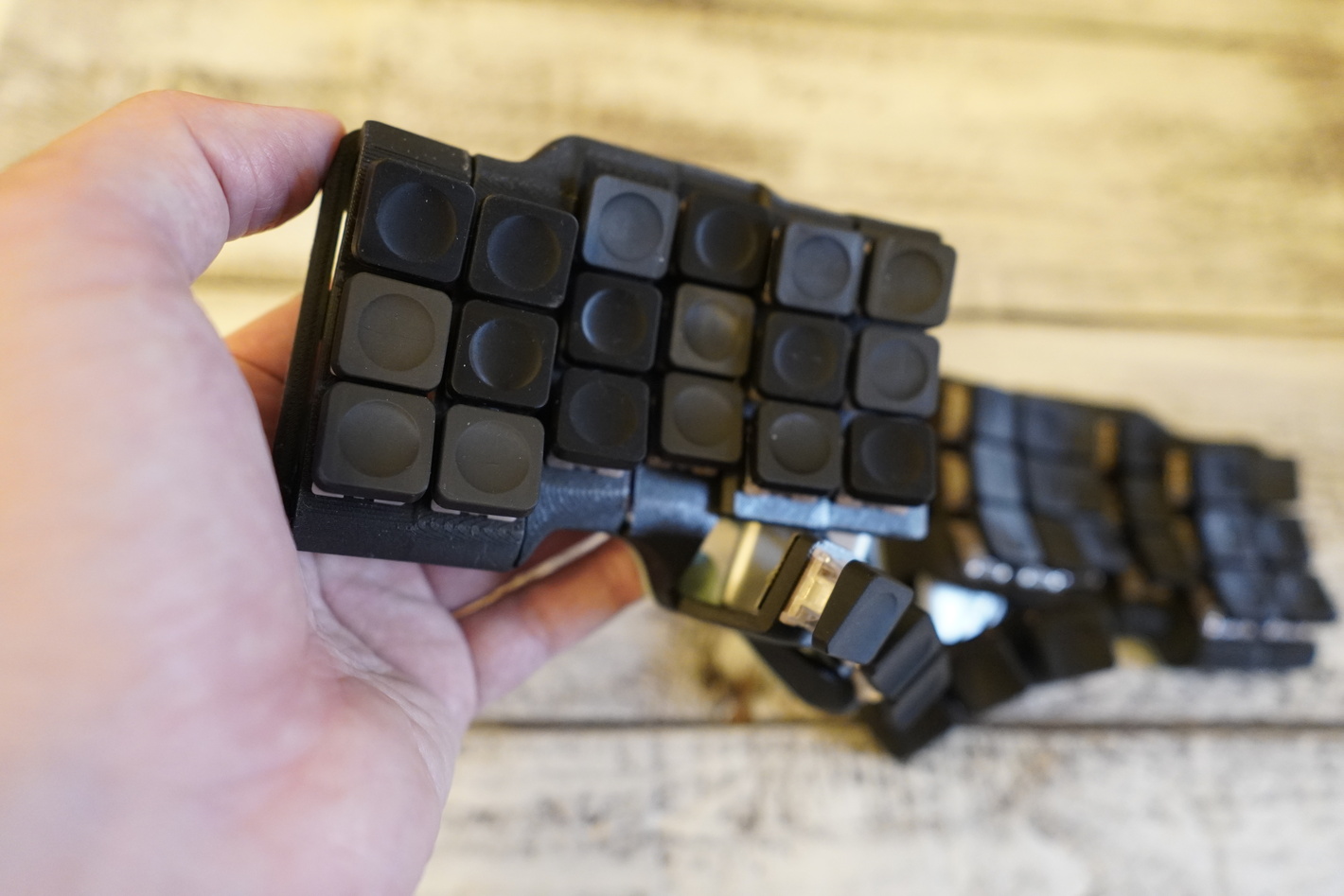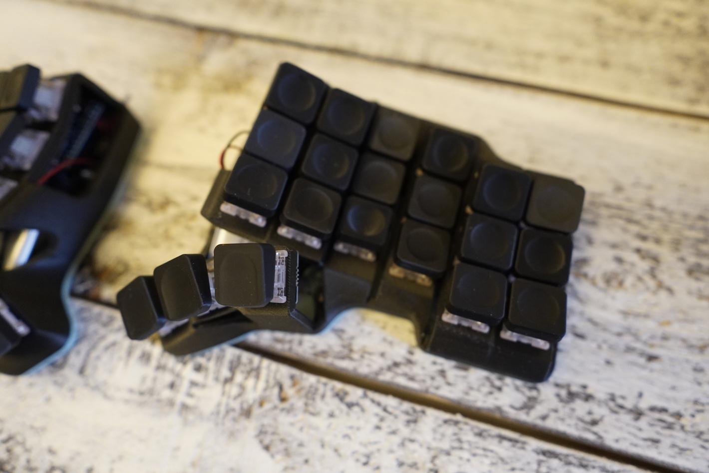 Раздельная механическая клавиатура TBK Mini Беспроводная, работает через bluetooth Корпус напечатан из композитного угленаполненного пластика Свитчи линейные LCET Dreamsea Silent Капы печатные на фотополимернике GammaCaps Батареи по 900mah