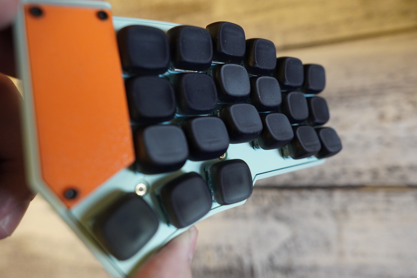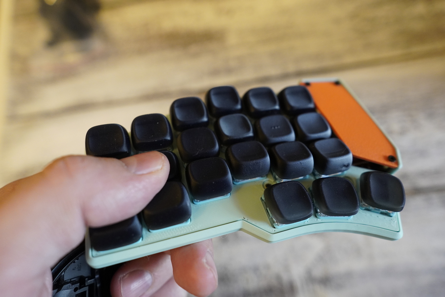 Раздельная низкопрофильная клавиатура DAO В каждой половине батарея по 300mah Свитчи в клавиатуре низкопрофильные Kailh Choc Robin. Это кликающие свитчи. Не каждому такое понравится, но любители есть. У них есть как тактильные так и звуковой отклик. Они кликающие, но не настолько сильно как MX кликающие свитчи. Капы стоят KLP LAME CHOC от @braindefender. Это капы с моим любимым профилем. Разпечатаны на фотополимернике 9k из композитной rigid смолы с керамической крошкой. Корпус сделан максимально тонким, тут не используются спейсеры, плата прилегает плотно к низу и верху корпуса. Работает на ZMK