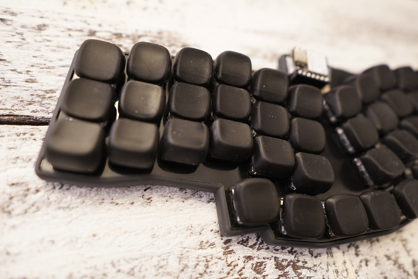 клавиатура моносплит revxlp свитчи Kailh Choc White капы KLP Lame напечатанные на фотополимернике, напечатаны из композитной смолы с керамической крошкой Качественный корпус SLA Работает на ZMK, работает как по проводу так и по беспроводу