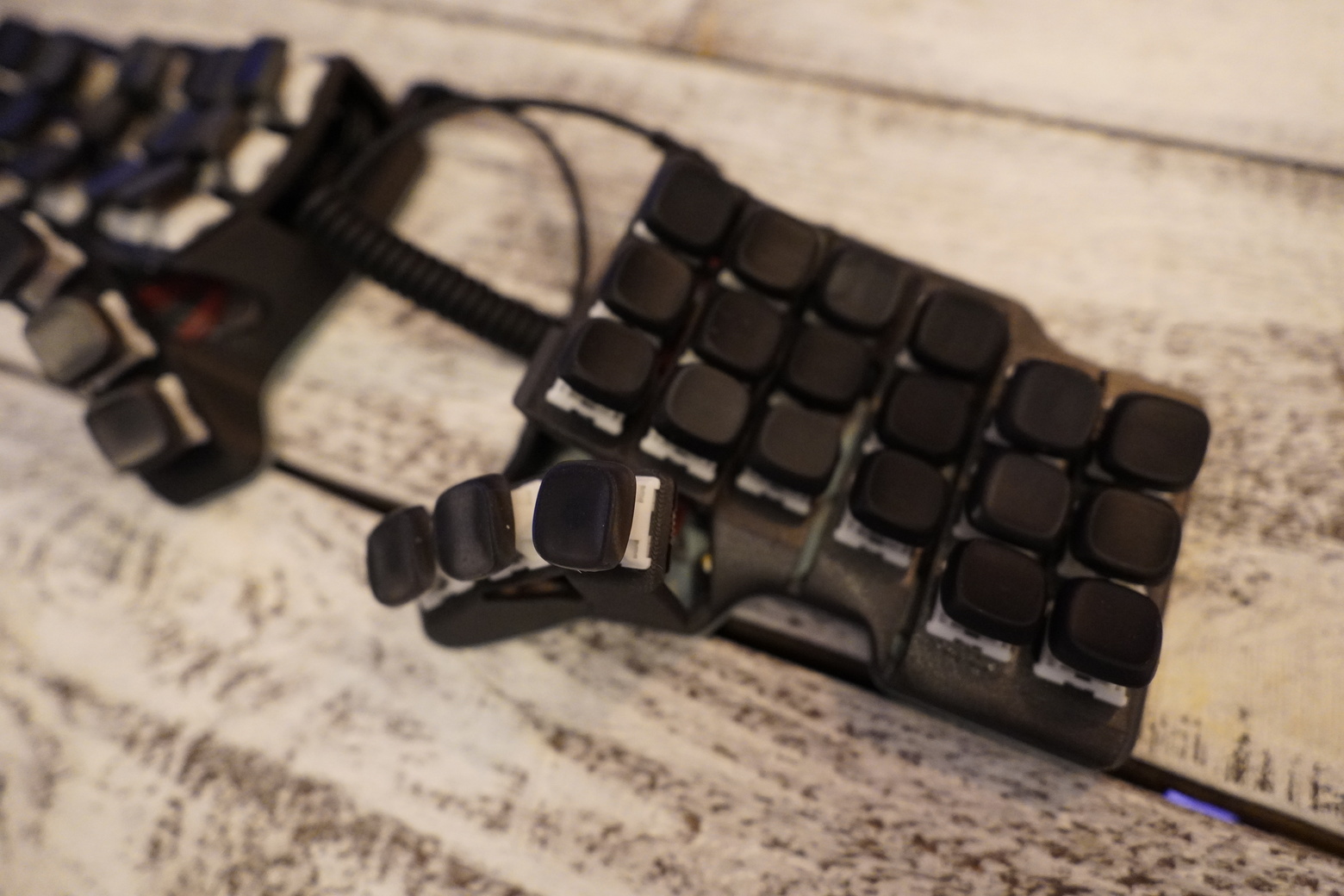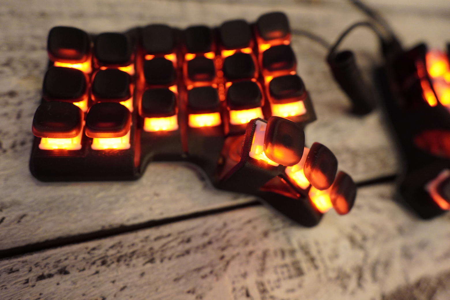 Работает на QMK, есть поддержка VIA Корпус из композитного угленаполненного пластика черного цвета. В этой версии клавиатуры установлен контроллер аналог splinky. А это значит, что тут есть VIA. То есть нужно просто поставить программу и в VIA уже менять раскладку. Прошивать не нужно. Но если вдруг надо, то поддерживаются стандартные прошивки для splinky v3 Установлен на сокеты, так что легко можно поставить беспроводной контроллер и докинуть батарею. Место под выключатель тоже есть. Свитчи бесшумные тактильные Outemu silent cream yellow Капы KLP Lame напечатанные на фотополимерном принтере по технологии SLA из rigid смолы (это что-то типа композитной, прочной смолы в которую добавлена керамическая крошка). Капы сделал braindefender, посмотреть можно тут -,https://github.com/braindefender/KLP-Lame-Keycaps Впаяна подсветка К этой клавиатуре рекомендую купить подставки и тентинг https://ergosplits.ru/item/170 https://ergosplits.ru/item/226