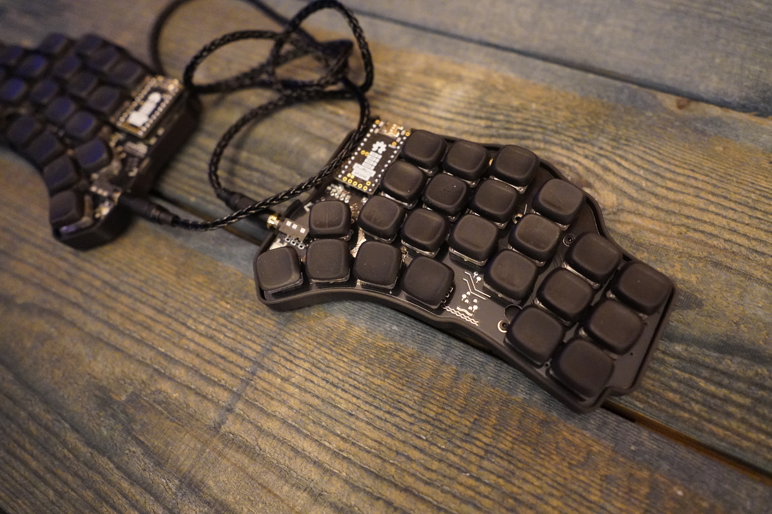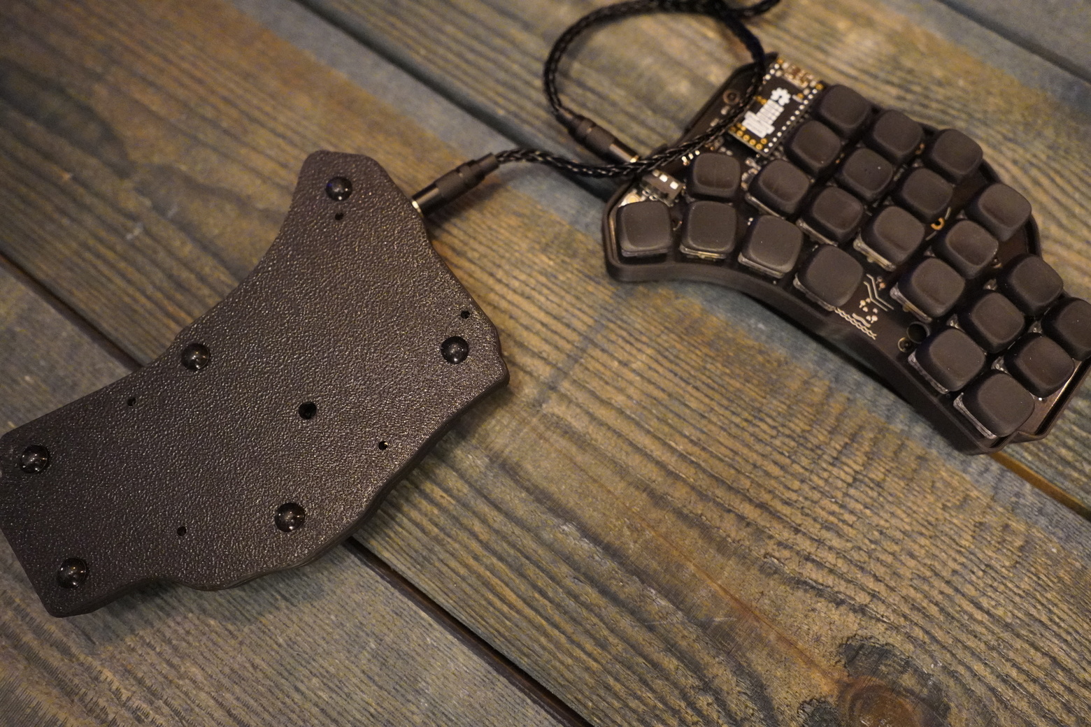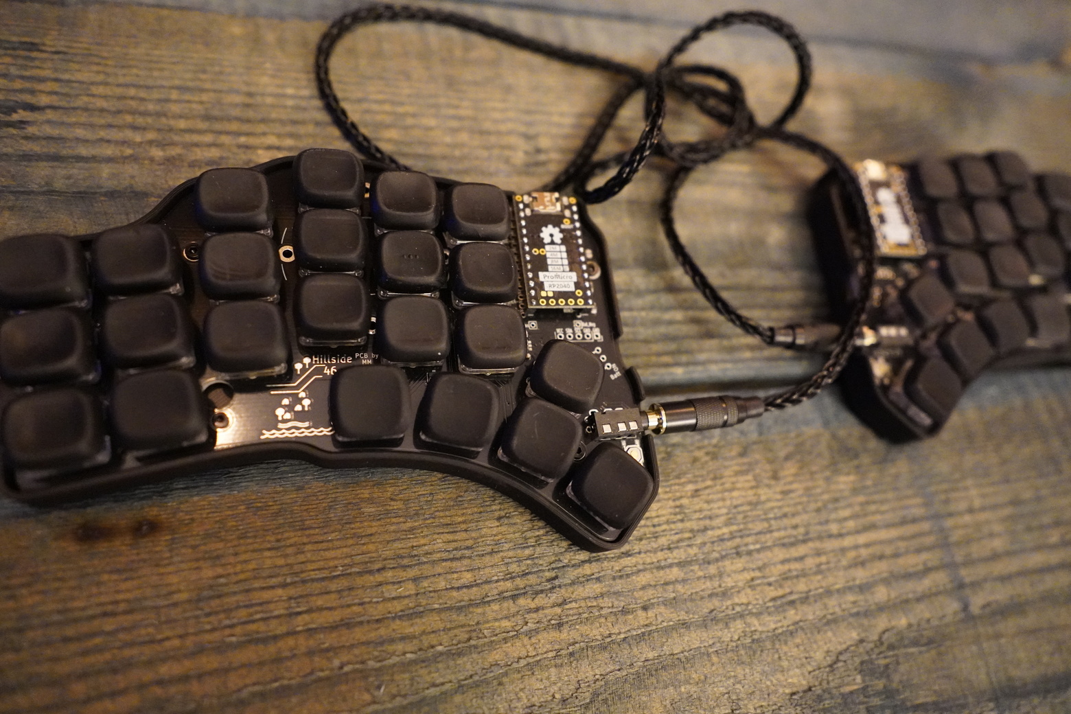 Низкопрофильная клавиатура Hillside 46 Свитчи низкопрофильные kailh silver Работает на QMK Капы KLP Lame напечатанные на фотополимерном принтере по технологии SLA из rigid смолы (это что-то типа композитной, прочной смолы в которую добавлена керамическая крошка). Капы сделал braindefender, посмотреть можно тут - https://github.com/braindefender/KLP-Lame-Keycaps