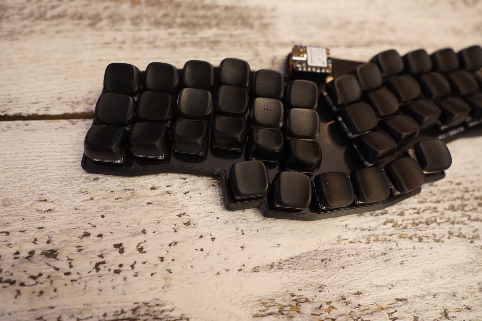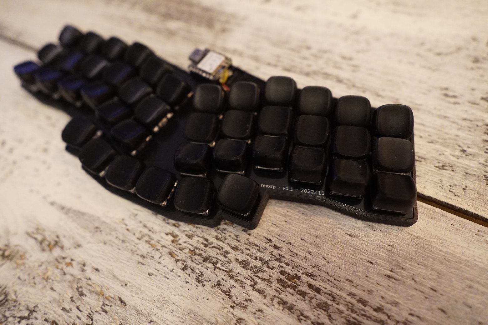 клавиатура моносплит revxlp свитчи Kailh Choc White капы KLP Lame напечатанные на фотополимернике, напечатаны из композитной смолы с керамической крошкой Корпус из FDM Работает на ZMK, работает как по проводу так и по беспроводу