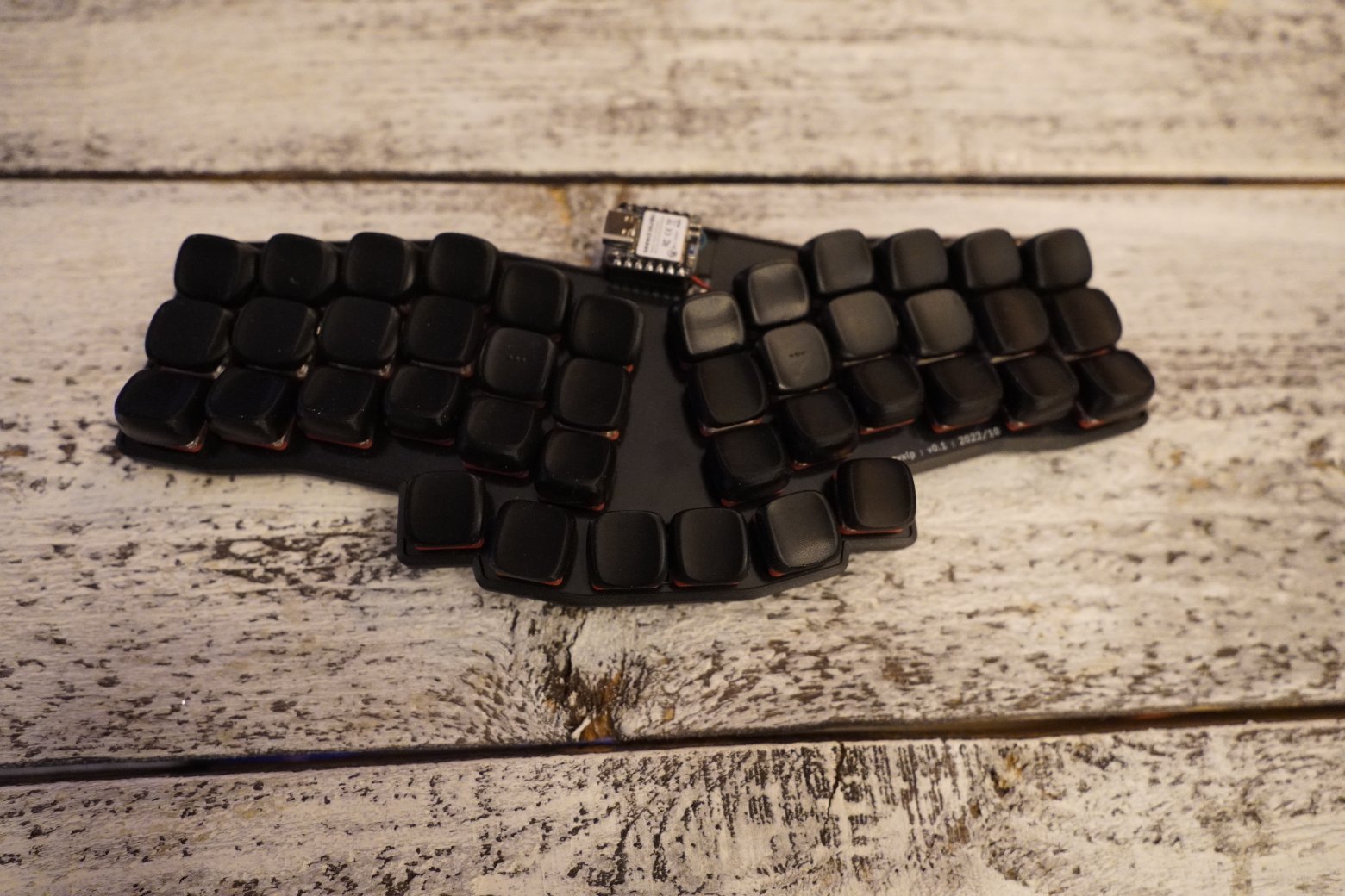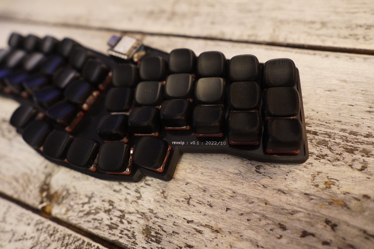 клавиатура моносплит revxlp свитчи Kailh Red Pro 2.0 капы KLP Lame напечатанные на фотополимернике, напечатаны из композитной смолы с керамической крошкой Корпус из FDM Работает на ZMK, работает как по проводу так и по беспроводу