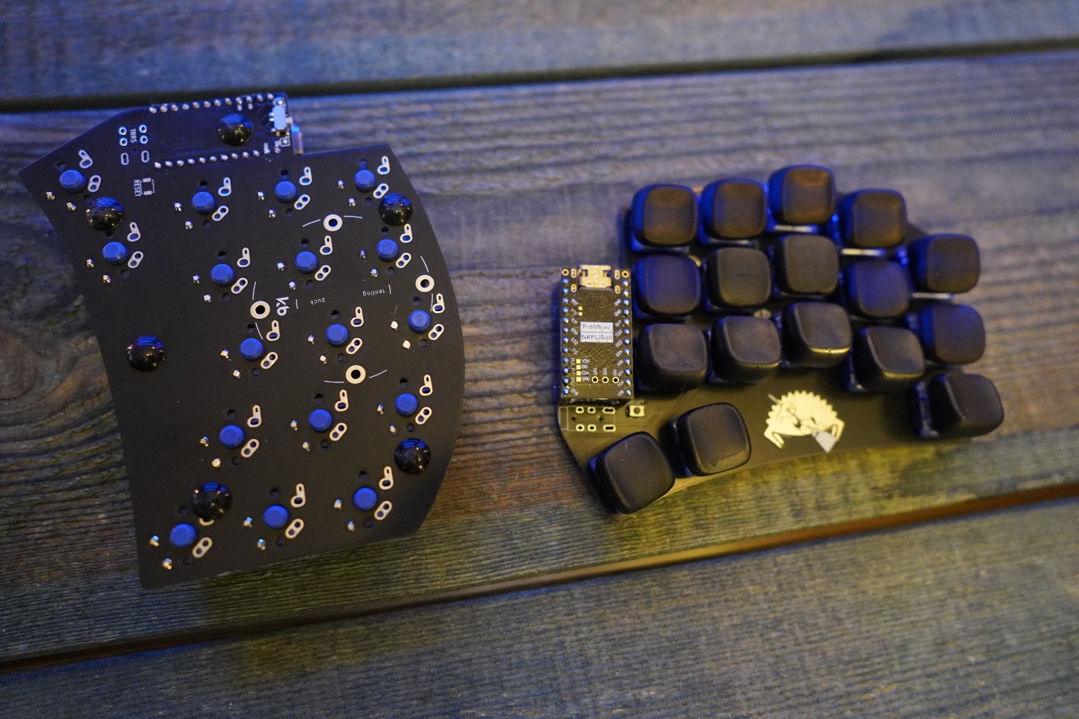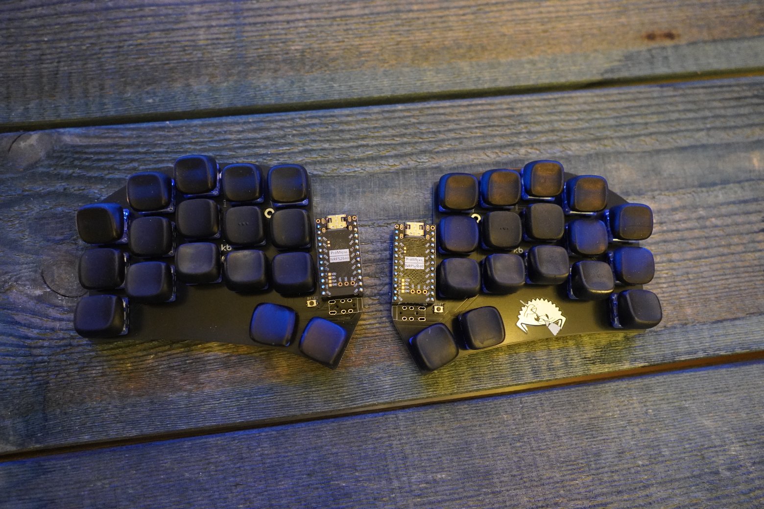 choc v2 kailh deep sea Капы KLP Lame напечатанные на фотополимерном принтере по технологии SLA из rigid смолы (это что-то типа композитной, прочной смолы в которую добавлена керамическая крошка). Капы сделал braindefender, посмотреть можно тут - https://github.com/braindefender/KLP-Lame-Keycaps батареи под контроллером работает на ZMK