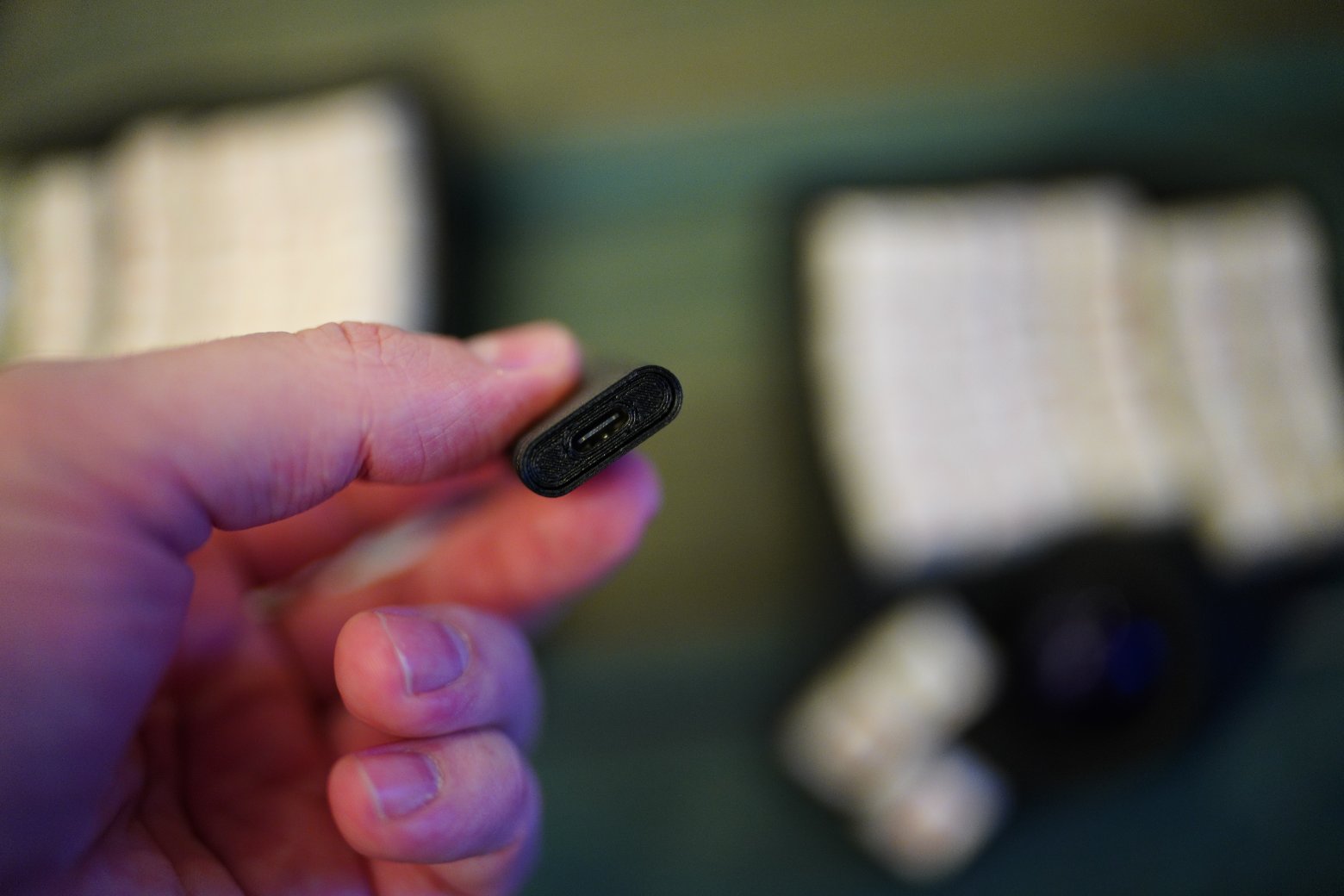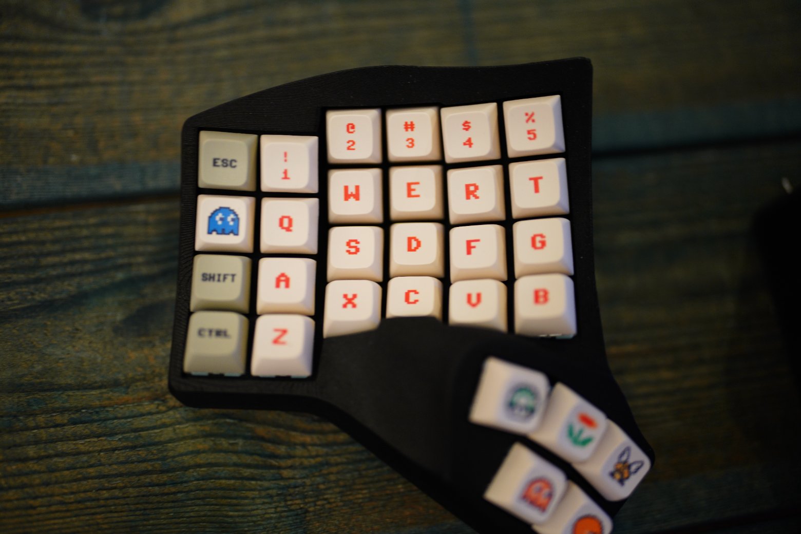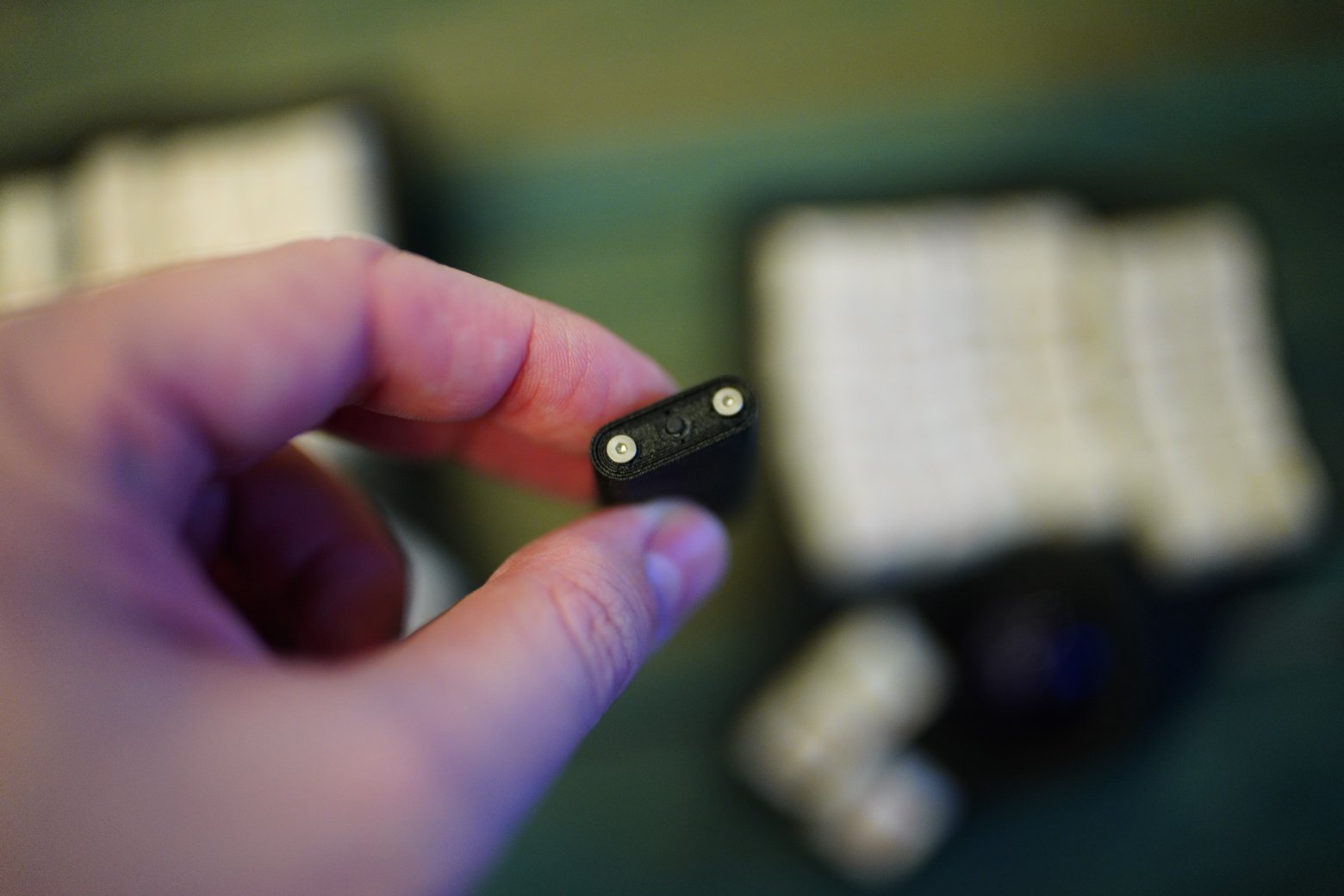 Charybdis 4-6 в корпусе новой версии. Сам корпус напечатан из композитного угленаполненного материала. На корпусе новые выключатели (если раньше они были снизу, то теперь это переключатель сзади). Сам корпус темно-серого цвета. Сам корпус зашкурен, покрашен и вскрыт лаком. Это беспроводная версия клавиатуры. Работает на ZMK. Батареи по 1100 и 900mah. Работает через донгл. Донгл с кнопкой. Свитчи - Sea Salt Linear В клавиатуре шар perixx Капы как на картинке В комплекте с кейсом для переноски