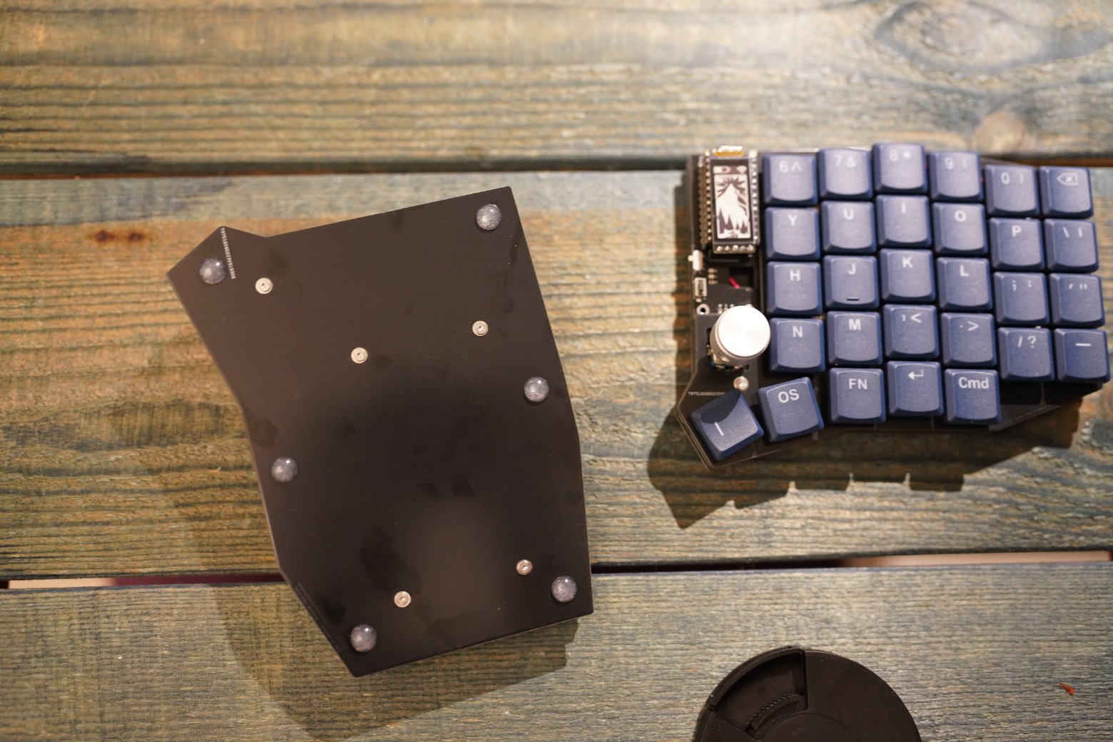 Низкопрофильная раздельная и беспроводная Sofle Свитчи тут стоят red pro. Это линейные и средние по силе свитчи. Есть хотсвап, так что сможете легко поменять на любые другие. Капы как на картинке Тут стоит очень тонкая батарея между платой и боттомом, но при этом она очень большая по обьему. Клавиатура будет работать на одном заряде около 37 дней. (Кстати, если добавить донгл, то время работы увеличится еще раз в пять) Из-за такого решения с одной стороны не видно батарею, с другой у клавиатуры довольно большой срок работы от батареи и при этом толщина увеличилась всего на 3мм. Сюда можно легко добавить OLED экранчик или Nice!view (найс вью это экранчик с электронными чернилами, который практически не расходует батарею, показывает профили, статус коннекта, текущий заряд каждой половины и слой в котором находитесь). Если нужен экранчик то рекомендую ставить как раз тот что с электронными чернилами. Обычный OLED лучше не ставить, потому что он катострафически сильно жрет батарею. По этой же причине тут не впаяна подсветка. Впаивать ее тоже не рекомендую. Эта версия софле готова к беспроводу. То есть тут есть выключатель на каждой половине. Корпус тут из FR4, но при этом довольно легко меняется на печатный, если вдруг надо. Моделей есть целая куча. Для того чтобы поменять нужна только отвертка. Работает на ZMK. Ссылка на прошивку тут - https://github.com/devpew/soflezmk В клавиатуре очень большие батареи в каждой половине на 800mah, при этом сами батареи очень тонкие, около 3мм и расположены в днище.
